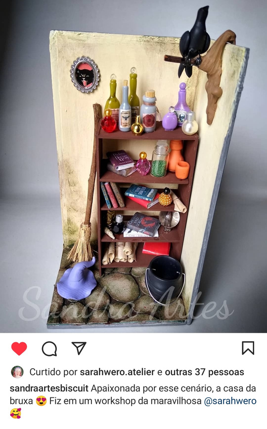 Sarah é professora e artista plástica multimídia nascida em Brasília e há mais de 20 anos cria miniaturas em materiais diversos. Está sempre aprendendo e se atualizando sobre o mundo das miniaturas, já tendo feito cursos até no Japão. Suas artes são todas criações exclusivas, feitas a partir de técnicas próprias e variadas.